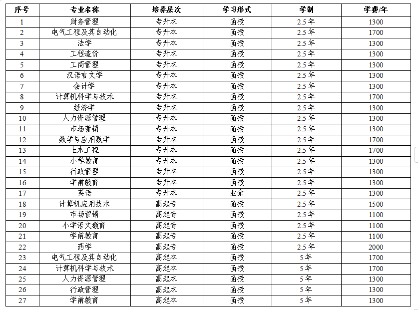 一、bet36体育在线2024年成人高等教育招生专业及收费标准一览表