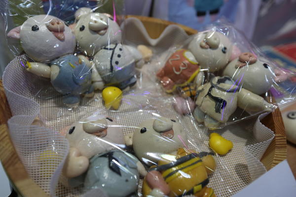 “这滑板新鲜啊,上面有生旦净末丑脸谱。”展厅内,琳琅满目的创意作品吸引着人们的眼球,不时引来赞誉声,“这个抱枕也不错,是三国卡通人物,有许昌三国文化底蕴”。“哈哈,这些小肥猪真可爱,你一顿能吃几个?”展台上一个木盆里,盛满了一个个肥猪造型的馒头,这些卡通形状的猪猪穿着时髦,憨态可掬,惹人喜爱。前来参观的一名女生指着这些馒头逗乐,笑问同学一次能吃几个猪猪。