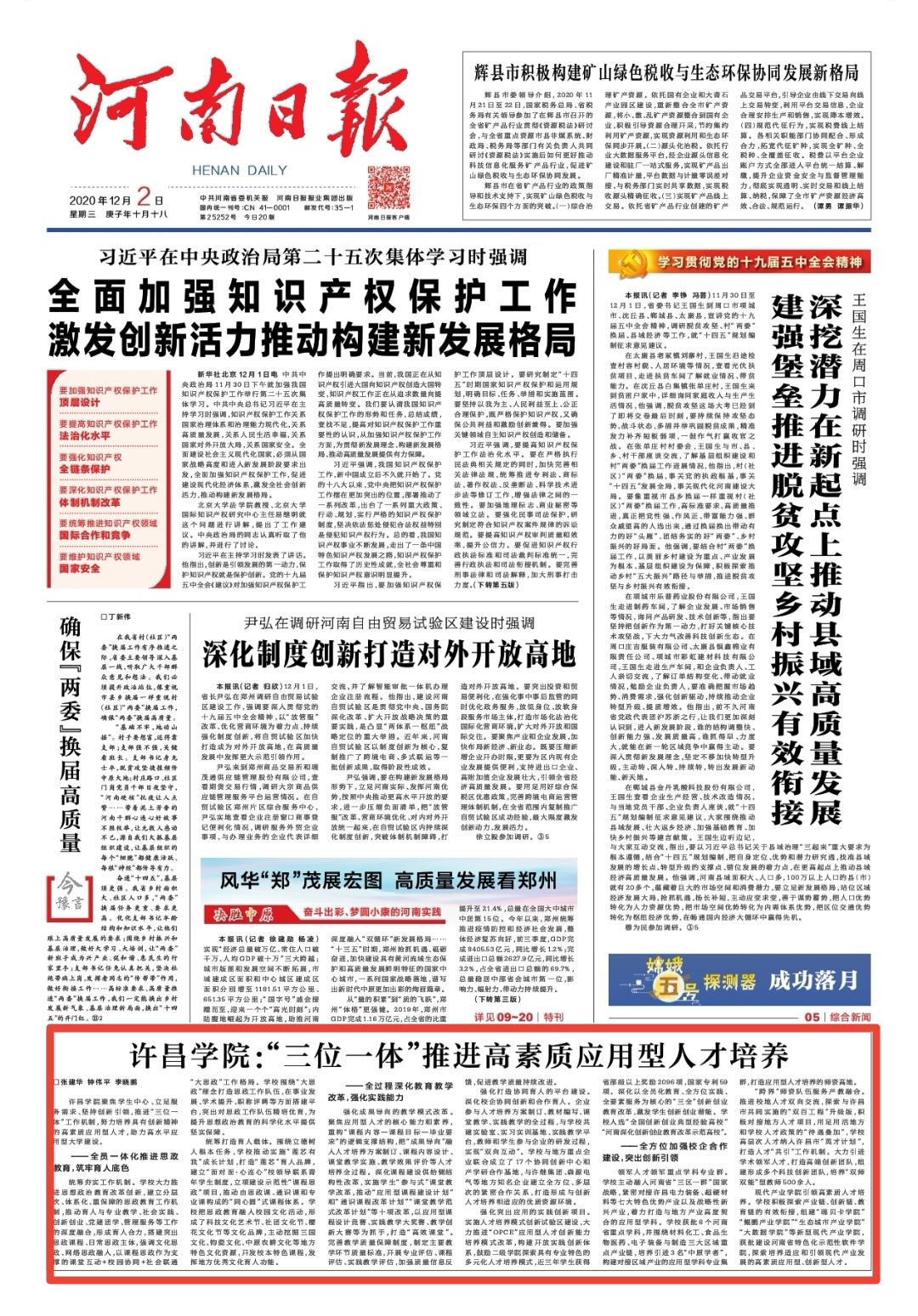 作者:张建华 钟伟平 李晓鹏 来源:《河南日报》(2020年12月02日 第01版) 编辑:岳凯声 浏览量: 日期:2020-12-02