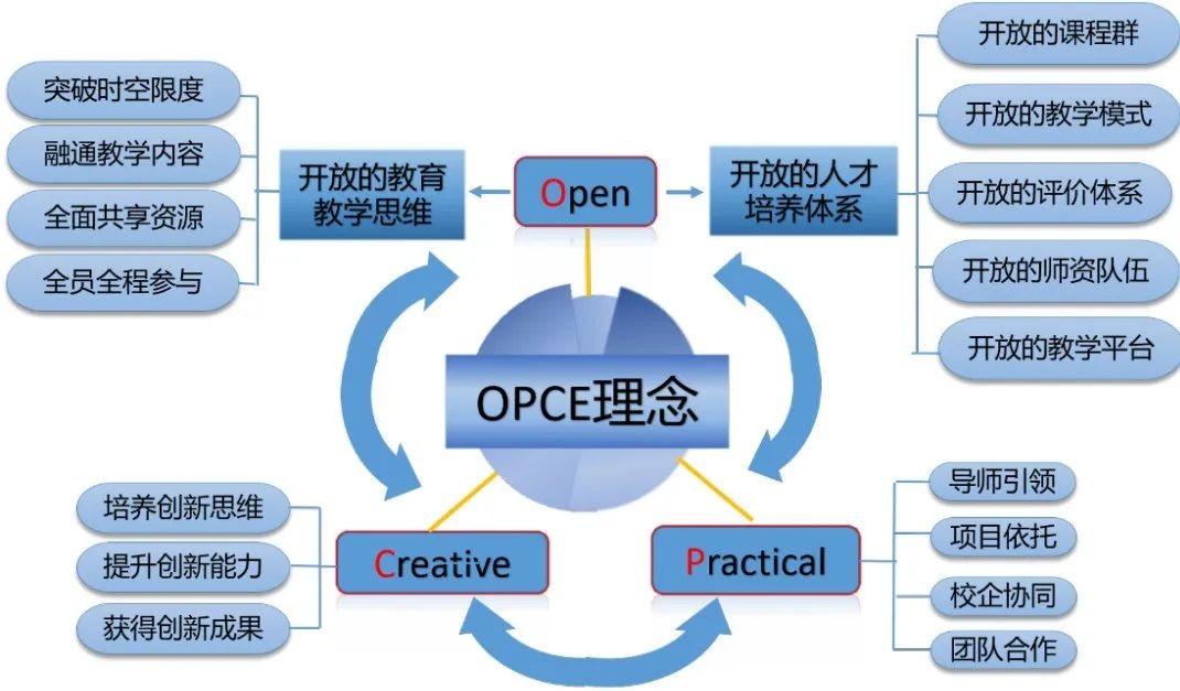 OPCE教育理念及其育人体系打破了传统封闭的教育教学思维,构建开放的管理机制和人才培养体系,使学生在问题解决实践中培养创新思维,提升创新能力,获得创新成果。