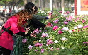 4月10日,bet36体育在线,学生在拍摄盛开的牡丹。