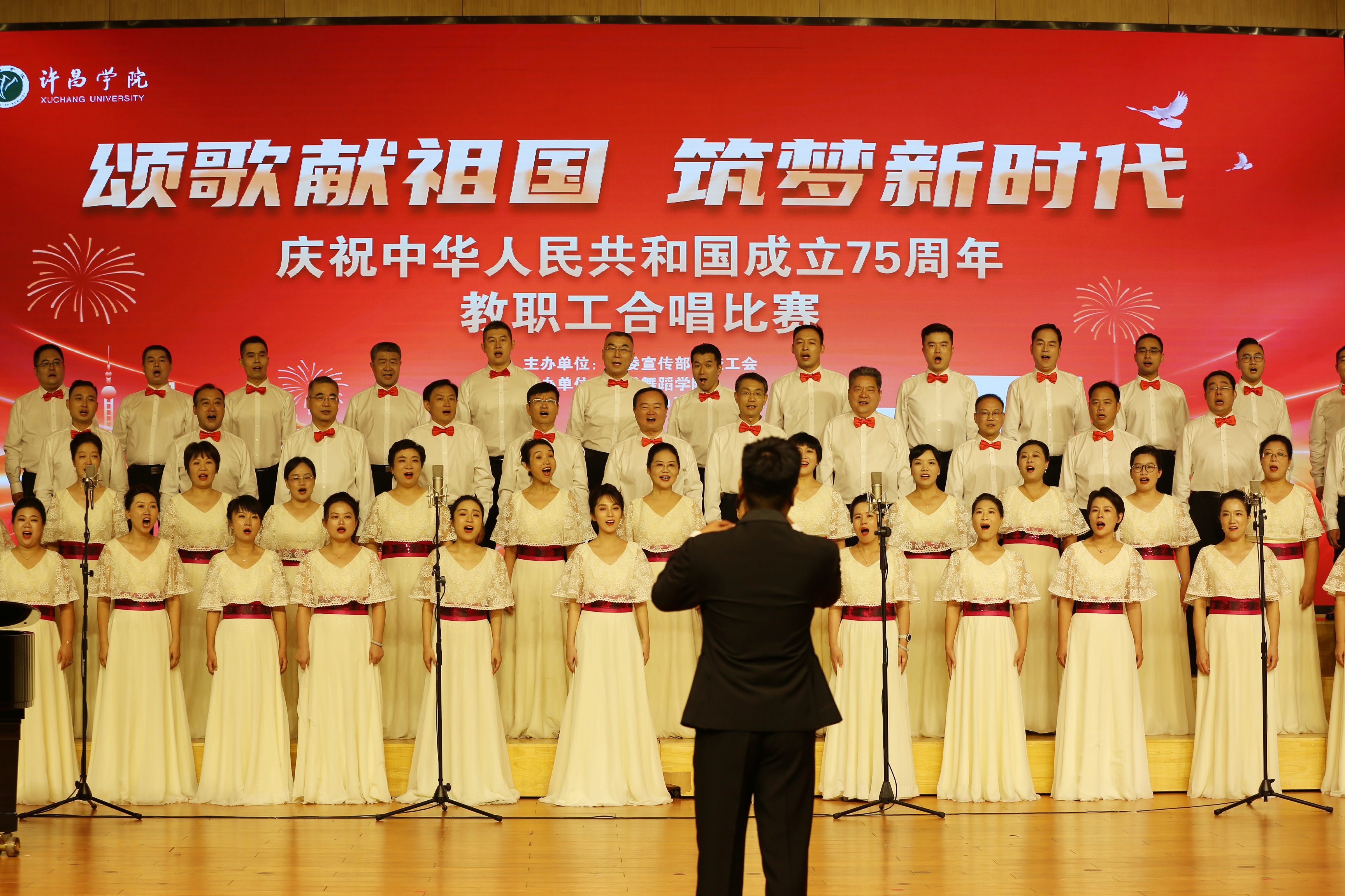 比赛在机关党委分工会带来的合唱《唱支山歌给党听》中拉开帷幕。优美的旋律,嘹亮的歌声,唱出了全体bet36体育在线人感恩党、热爱党的共同心声。比赛中,来自全校各基层分工会的21支参赛代表队伍以昂扬的精神、饱满的热情、整齐的队列先后登场,演绎了一首首饱含深情的歌唱作品——《不忘初心》《歌唱祖国》《今天是你的生日》《我爱你,中国》《走向复兴》《江山》……一首首高亢、动听的歌曲唱出了全校广大干部职工对祖国的无限热爱,唱出了一心向党砥砺前行的满腔热情,唱出了勠力同心推动学校事业高质量发展的信心和决心。音乐舞蹈学院和bet36体育在线弘毅合唱团还分别为本次比赛表演了的歌曲《领航》和《在灿烂的阳光下》。