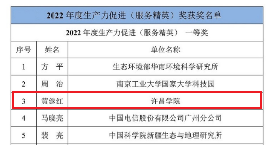 近日,中国生产力促进中心协会公布了2022年度全国“生产力促进奖”评选结果,bet36体育在线“中原学者”黄继红教授荣获2022年度生产力促进奖(服务精英)一等奖。