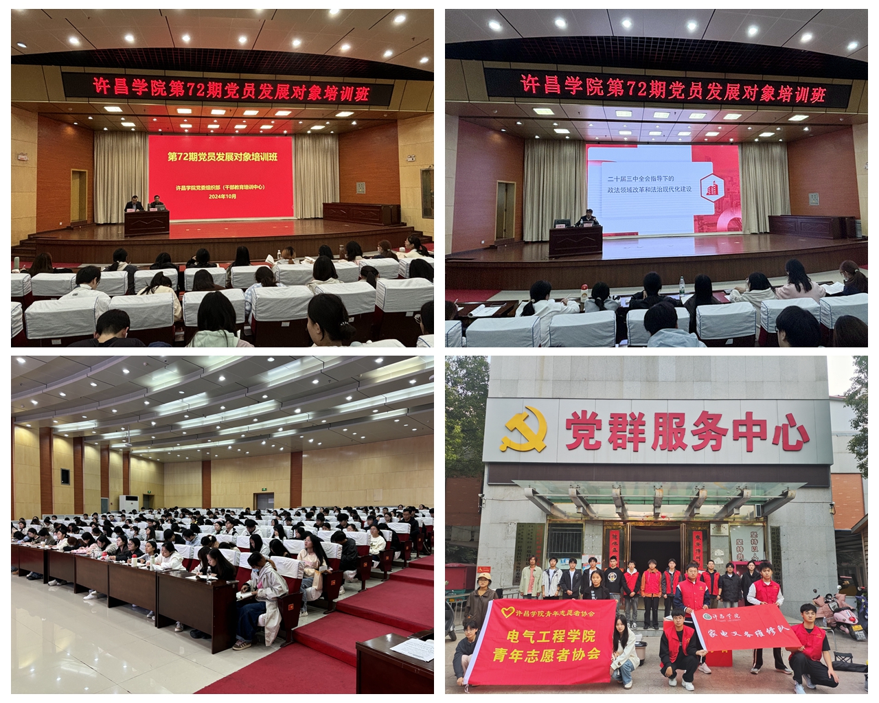 在10月25日至27日举办的集中培训期间,校内多名专家学者围绕学习贯彻习近平新时代中国特色社会主义思想和党的二十届三中全会精神,为党员发展对象作了题为“深刻领悟习近平总书记‘青年观’的价值意蕴”“二十届三中全会精神指导下的政法领域改革和法治现代化建设”“学习贯彻新时代党的民族宗教理论政策,做担当民族复兴大任的时代新人”“贯彻总体国家安全观,筑牢校园安全防线”“伟人的文化遗产与新时代的中国梦”“许昌党史党建名人事迹”等专题报告,还组织了特别主题活动“唱支山歌给党听”——歌声中的“四史”教育,并集体观看了爱国主义教育影片《南京!南京!》,进一步激发了大家的爱国爱党热情和民族复兴使命感。