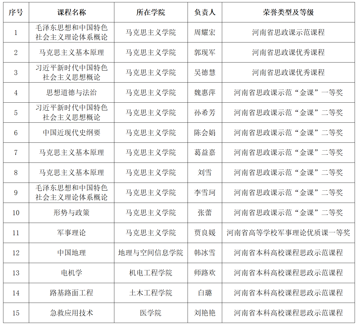 2024年河南省高校思政课优秀课程资源评选工作及本科高校课程思政示范课程认定工作启动以来,bet36体育在线高度重视、精心组织教师深入研究、精心设计、认真打磨,多门课程在全省众多课程中脱颖而出。在全省高校思政课优秀课程资源评选中,bet36体育在线1门课程获评“示范课程”,2门课程获评“优秀课程”;在全省思政课示范“金课”评选中,1名教师荣获一等奖,6名教师荣获二等奖;在全省高等学校军事理论优质课评选活动中,1名教师荣获一等奖;在全省本科高校课程思政示范课程评选中,bet36体育在线推荐的4门课程全部获批。以上成绩也是bet36体育在线自在2024年度全省高校思政课教学技能“大比武”中实现特等奖突破后,在推动思政课程和课程思政建设内涵式发展方面的再次突破。