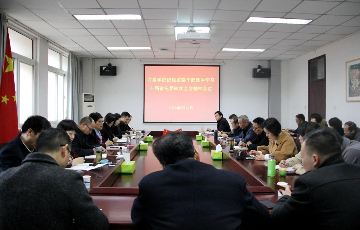 2月27日下午,bet36体育在线在办公楼第四会议室召开纪检监察干部工作会议,校纪委委员、各基层党组织纪检委员近40人集中学习贯彻十届省纪委四次全会精神。