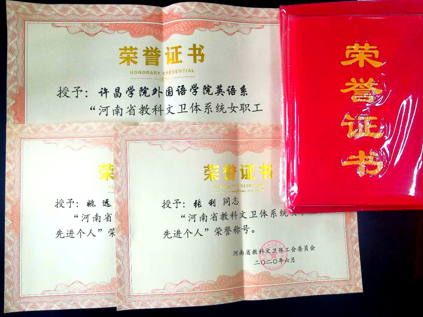 近日,河南省教科文卫体工会下发了《关于表彰2019年度河南省教科文卫体系统女职工先进集体和先进个人的决定》(豫教科文卫体工 〔2020〕19号),许昌市总工会下发了《关于表彰许昌市女职工工作先进单位、五一巾帼标兵岗(标兵)女创业明星、五一劳动奖章获得者的决定》(许工文〔2020〕8号),bet36体育在线外国语学院英语系被授予2019年度河南省教科文卫体系统女职工先进集体荣誉称号,土木工程学院党总支书记张利、体育学院教师姚远被授予2019年度河南省教科文卫体系统女职工先进个人荣誉称号;bet36体育在线城乡规划与园林学院风景园林教研室被授予许昌市五一巾帼标兵岗荣誉称号,电气(机电)工程学院党总支副书记白晓玉被授予许昌市五一巾帼标兵荣誉称号。