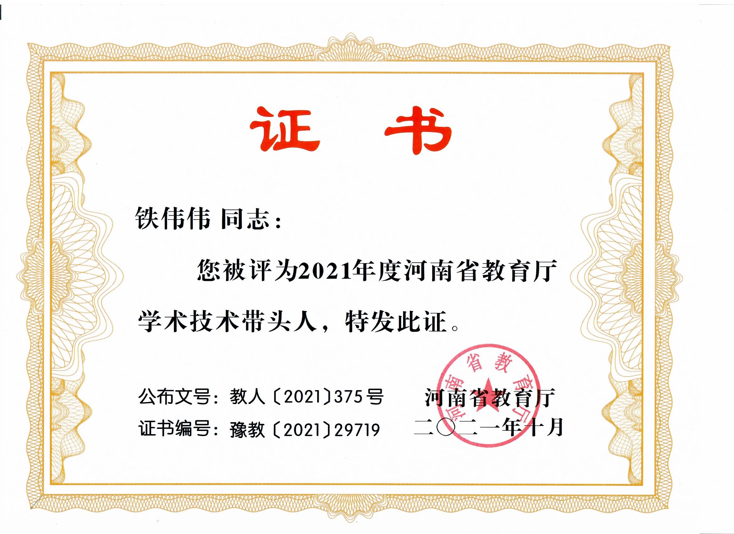 近日,河南省教育厅发布了《关于公布2021年河南省教育厅学术技术带头人入选名单的通知》(教人〔2021〕375号)文件,bet36体育在线铁伟伟、王忠灿两名教师入选。