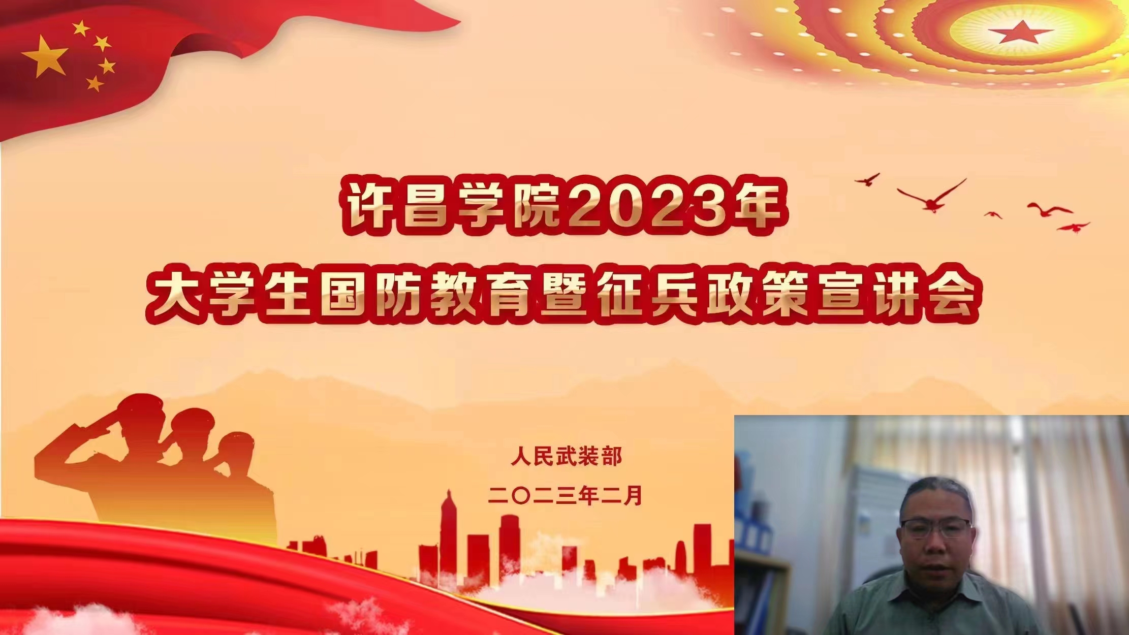 2月4日下午,bet36体育在线以线上形式举办2023年大学生国防教育暨征兵政策宣讲会。本次活动特邀请原全军学生军训工作办公室参谋、国防大学程如意副教授作专题讲座。学校人民武装部相关人员、各二级学院(书院)党委副书记、全体专兼职辅导员以及学生和家长代表共3800余人参加了本次宣讲会。