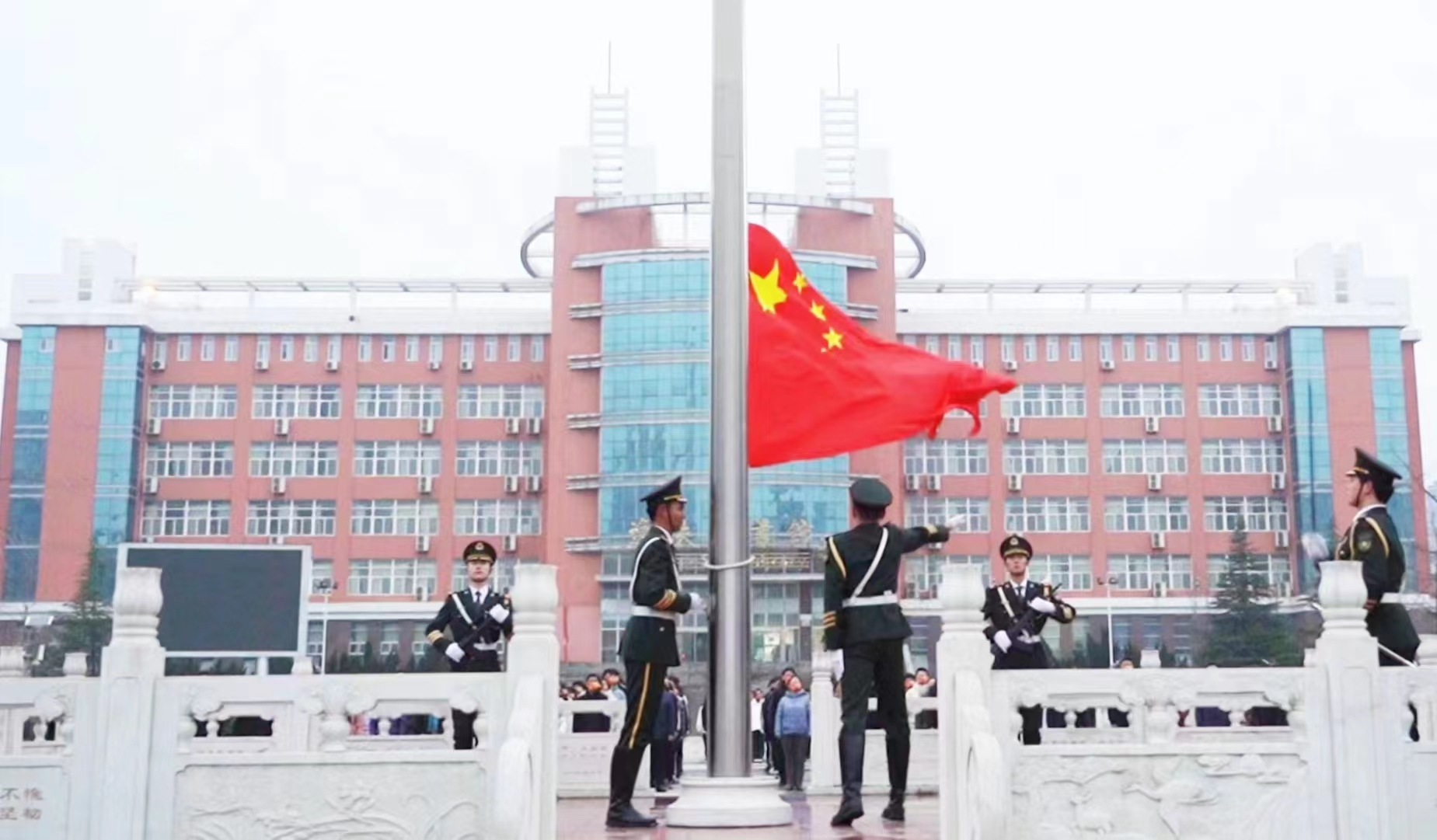 7时整,国旗护卫队护卫着国旗,迈着整齐的步伐,精神抖擞地向国旗台稳步前进。伴随着铿锵激昂的《义勇军进行曲》,鲜艳的国旗冉冉升起,迎风飘扬。国旗下,全体师生庄严肃立,面向国旗敬礼致敬,齐声高唱国歌,深情表达对伟大祖国的无限热爱和由衷敬意。