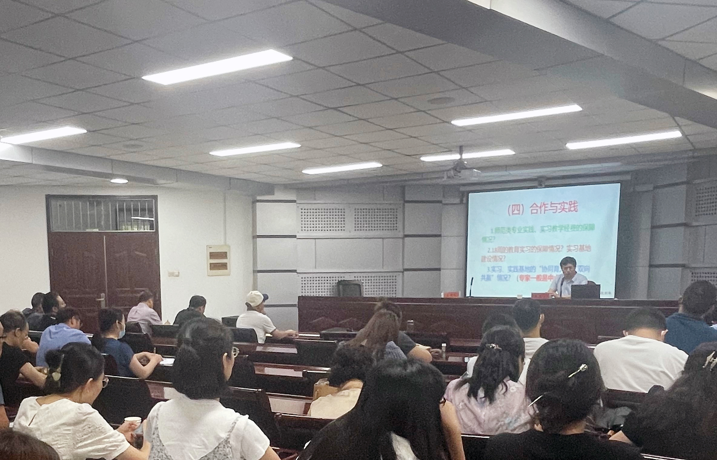 教务处(教学质量监控与评估中心)、教师中心、文史与传媒学院、教育学院、数理学院、体育学院、音乐舞蹈学院等二级学院相关负责人、师范专业负责人和教师代表参加培训会。(照片由教师中心提供)