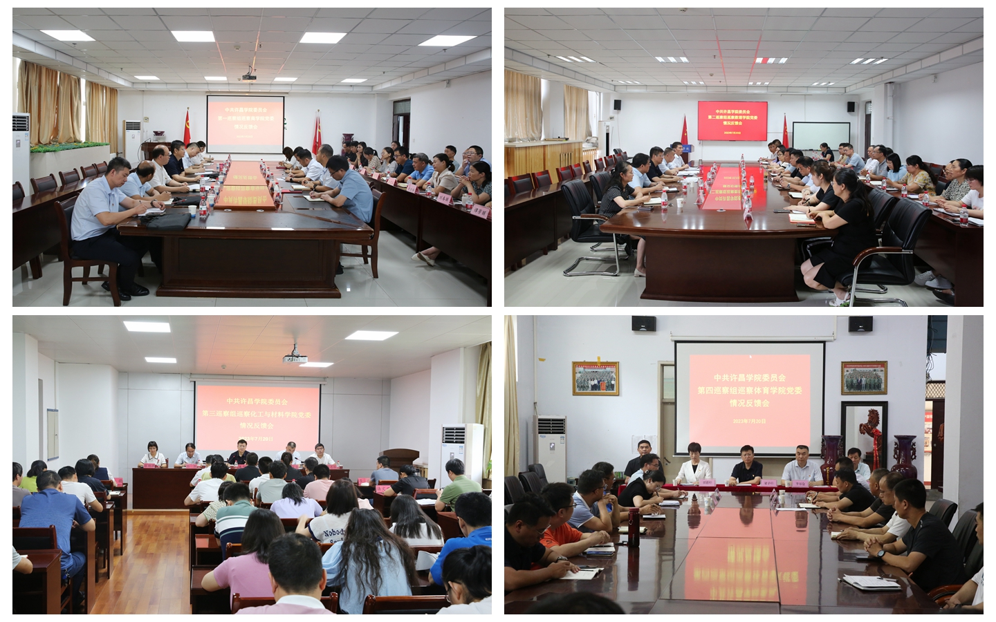 反馈会上,4个党委巡察组组长围绕“三个聚焦”分别向商学院、数理学院、化工与材料学院、体育学院等4个被巡察党组织集中反馈了巡察发现的主要问题并提出整改建议;4个被巡察党组织负责人作了巡察整改表态发言;会议还对本轮巡察整改工作进行了安排部署。