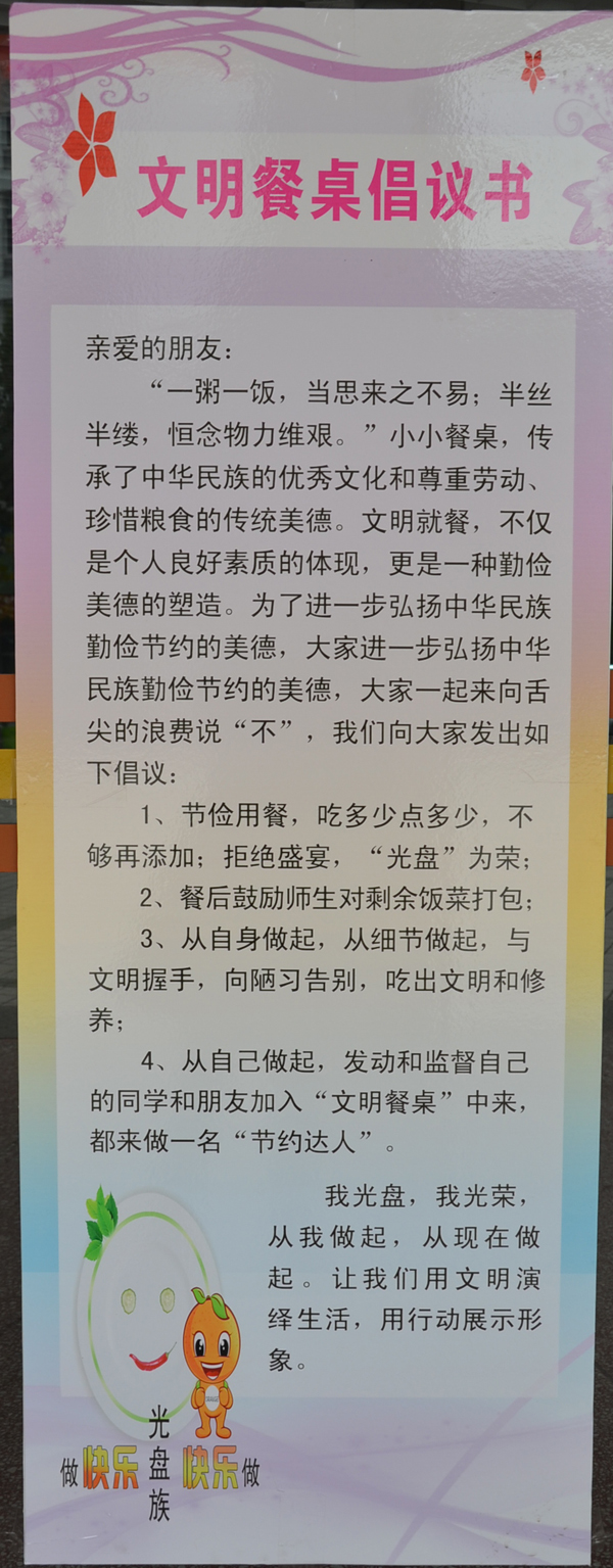 排队刷卡打饭、量“力”用餐不剩不丢、饭后自觉归放餐具、买“半份菜”保证营养又不浪费……勤劳节俭是中华民族的传统美德,在许院校园中勤俭节约的文明之风已渐成风尚。为号召全体师生以勤俭节约为时尚,倡导餐桌文明之风,10月30日——11月12日bet36体育在线组织开展了文明餐桌活动。