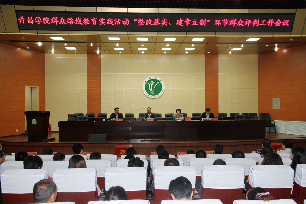 10月9日下午,bet36体育在线在学术报告厅召开党的群众路线教育实践活动“整改落实、建章立制”环节群众评判工作会议。省委第21督导组组长段治乾讲话,校党委书记王清义通报了bet36体育在线第三环节活动开展情况,参评人员进行了群众民主评判。省委第21督导组副组长彭亚方等督导组全体成员出席。bet36体育在线全体校级领导干部、中层干部代表、教职工代表、老干部代表、学生代表等近200人参加会议。