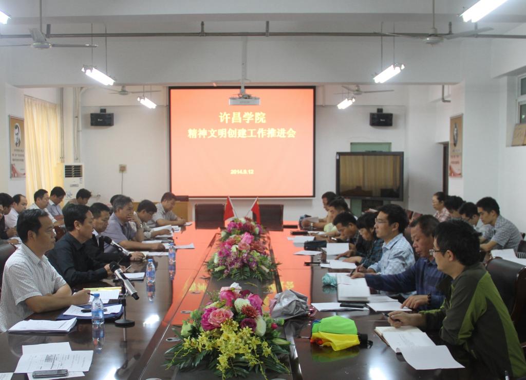 党委副书记马超在会上讲话。他指出,全国文明单位创建工作意义重大,是全校师生的共同利益所在,是促进学校内涵建设的有力抓手和重要突破口。全校师生要进一步统一思想,提高认识,明确创建工作的重要意义,切实增强责任感和紧迫感;各单位各院(部)要着力打造基层精神文明创建的特色和品牌,要认真对照全国文明单位测评体系,以创建为契机,进行排查整顿,实地走访、发现问题,解决问题;要抓好校园文化建设,特别是工作作风、教风、学风和校园环境,大力弘扬学习之风、礼仪之风、勤俭之风,以具体措施为支撑,紧紧围绕学校的中心工作和转型发展的大局,从形象建设到内涵建设、从制度建设到自觉实践,不断提高精神文明的总体水平和质量。