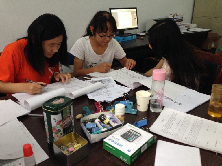 实践队员一到博达会计事务所,就受到事务所张卓董事长等人的热烈欢迎。在博达会计事务所会议室,张卓董事长对博达会计师事务所的历史、规模、业绩及企业文化进行了介绍,并结合自己的从业经验,对会计的就业前景进行详细分析,在职业选择方面向实践队员提出了宝贵的意见和建议。接着,根据会计事务所的安排,实践队员被分配到了审计部、办公室、资产评估部、工程造价部等部门,开始了期待已久的职场体验活动。顶岗见习工作从简单的装订账簿,查找凭证开始。整理过程虽然辛苦,但在好奇心和求知欲的驱使下,队员们积极热情的完成了档案整理工作。之后,队员们分组进行账目录入、抽查记账凭证和整理报表。由于缺乏实践经验,这些基础工作做起来有些困难,但队员们及向事务所工作人员进行虚心求教,通过学习,逐渐掌握了工作要领,保质保量的完成所分配的工作任务。