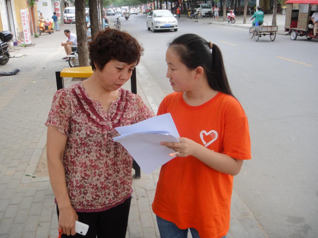调研中,队员们热情积极,礼貌大方地给过往行人发放问卷,并详细介绍调研主题、目的及内容。大多市民都很乐于接受调查,并认真填写问卷。问卷涉及“市民是否了解非物质文化遗产”、“知道哪些许昌的非物质文化遗产”、“政府是否有必要加大非物质文化遗产的保护力度”、“目前在非物质文化遗产保护和开发方面存在哪些问题”及“市民有哪些建议”等内容,力求多方位了解许昌市民对许昌非物质文化遗产的了解程度和对非物质文化遗产保护方面的态度。调研中,队员们发现,大多市民对于“物质文化”和“非物质文化”的概念混淆不清,比如,他们熟悉越调、钧瓷烧制技艺,但不知道它们是非物质文化遗产。此外,据调查发现,一些市民感觉非物质文化遗产的发展、保护和开发与自己距离遥远,平时并没有予以关注。