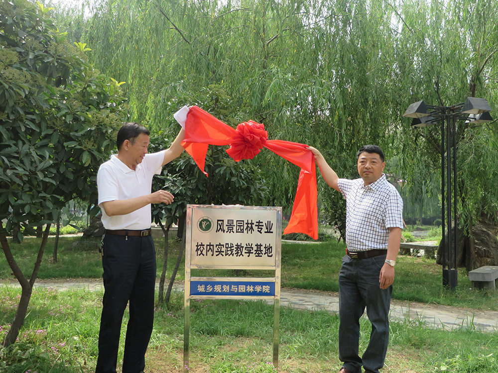 仪式上,张建军副院长与花都集团公司董事长、bet36体育在线双百工程“特聘教授”杨凯亮共同为实践教学基地揭牌,随后2012级风景园林学生在许昌花都养护公司袁选民经理的带领下进行了为期一天的校内实习,主要包括树木花卉管理与养护工具和设备的识别与操作、校内不同功能区植物配置分析。