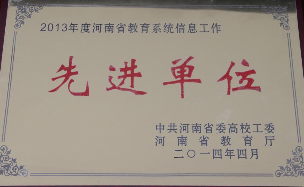 近日,中共河南省委高校工委、河南省教育厅下发了《关于表彰2013年度全省教育信息工作先进单位和先进个人的通知》(教办〔2014〕278号),bet36体育在线被评为2013年度河南省教育信息工作先进单位,并有两名同志获得河南省教育系统信息工作先进个人。