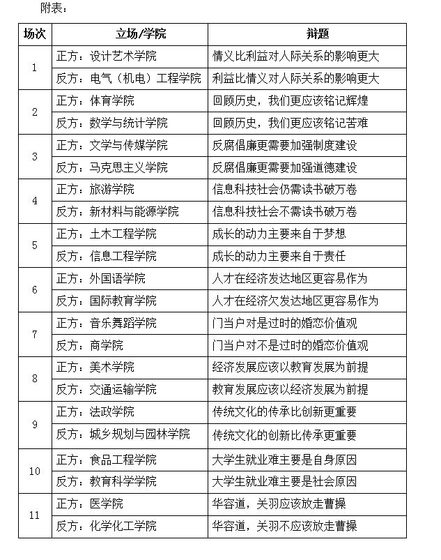 第31届“雄才韬略”辩论赛初赛立场及对阵情况