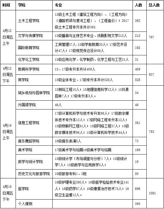 补测时间:补测时间:2019年4月12日、4月19日(周五)全天