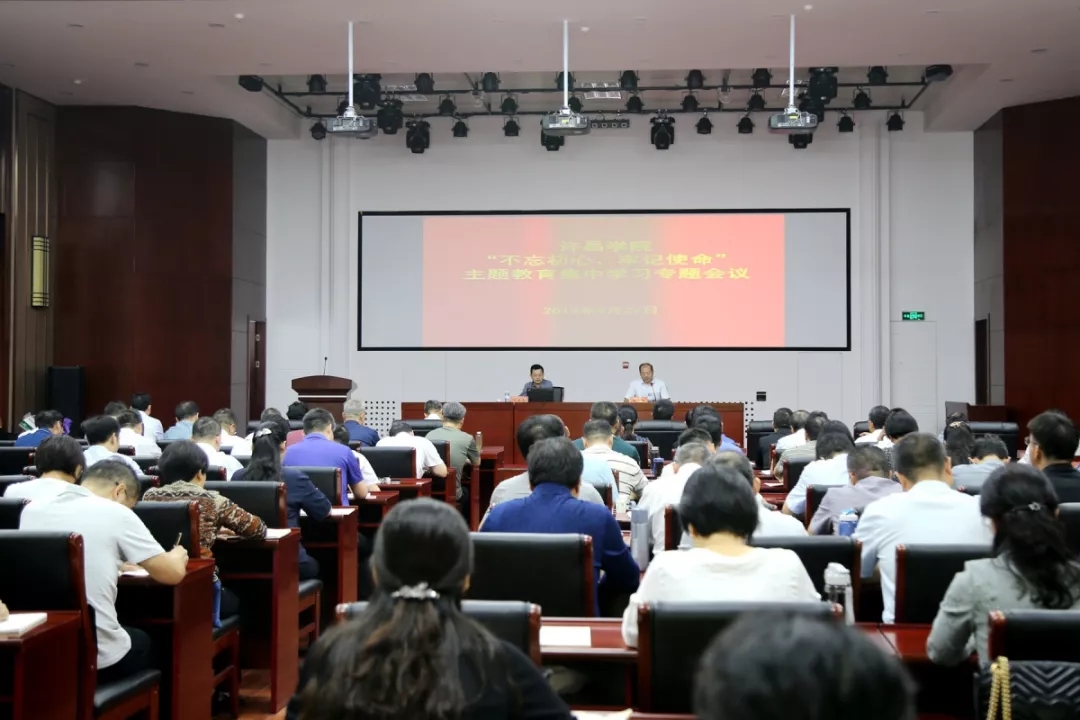 学校结合实际,编印主题教育学习资料汇编,同时对个人自学和集中学习内容、方式、次数提出明确要求。学校还建立长效机制,坚持每周上班伊始集中学习1小时制度。以党委理论学习中心组为主要形式,攻坚克难,破解瓶颈,设置“立德树人”“三全育人”“思政课程与课程思政”“学科、专业、硕士点建设”等多个专题,进行系列深入研讨交流。邀请许昌市委书记胡五岳上专题党课,邀请省委党校叶春涛博士作《中国共产党的奋斗历程》专题辅导报告。通过召开工作会议、推进会等形式以会促学。观看话剧《焦裕禄》、电影《血战湘江》和纪录片《初心永恒》等,组织到许昌市“不忘初心、牢记使命”主题教育展馆参观,重温入党誓词。注重在主题教育中加强师生爱国主义教育、弘扬爱国主义精神。通过组织集体观看国庆大阅兵仪式、观看电影《我和我的祖国》、参加许昌市烈士纪念日公祭活动、举办“我和我的祖国”庆祝中华人民共和国成立70周年教职工合唱比赛、开展“军歌嘹亮,青春告白祖国”网络拉歌活动等,不断创新形式,加强师生爱国主义教育,弘扬爱国主义精神。领导干部能够以上率下,带头学习,以理论滋养初心、以理论引领使命,不断增强“四个意识”、坚定“四个自信”、做到“两个维护”。