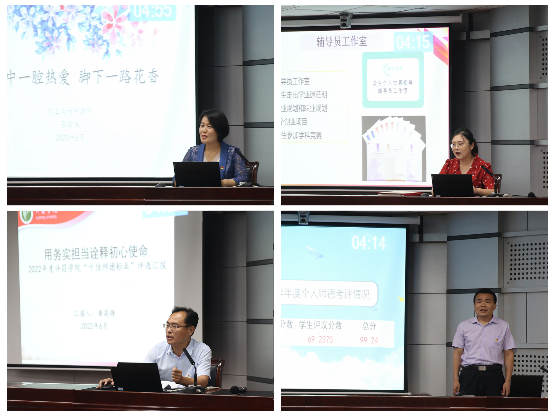 汇报会上,23位候选人结合自身工作经历、师德评价结果、工作业绩、师德师风突出事迹等方面对近年来的立德树人、教书育人工作进行了汇报,生动讲述了对教师职业的深度认同、对教书育人神圣职责的深刻理解。他们通过讲述平凡工作中的感人故事,表达了对教育事业的炽热情感和对学生的无私关爱。