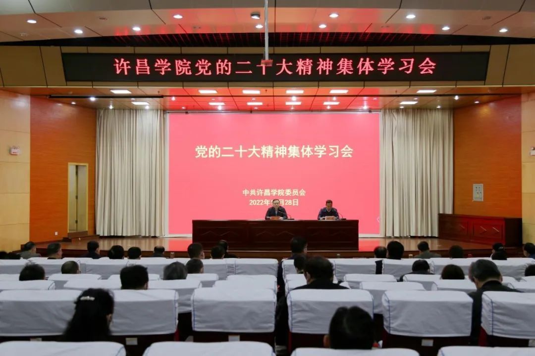 10月28日上午,bet36体育在线在图书馆二楼学术报告厅召开学习贯彻党的二十大精神集体学习会,校党委书记郭涛作专题辅导报告,并对全校深入学习宣传贯彻党的二十大精神进行安排部署。校级领导郑直、孙海、崔斌、周新峰、高金星、潘春彩、王东晓、杜根远出席会议。全体中层正职领导干部,各二级学院(书院)党委副书记,师生代表参加学习会。会议由党委副书记孙海主持。