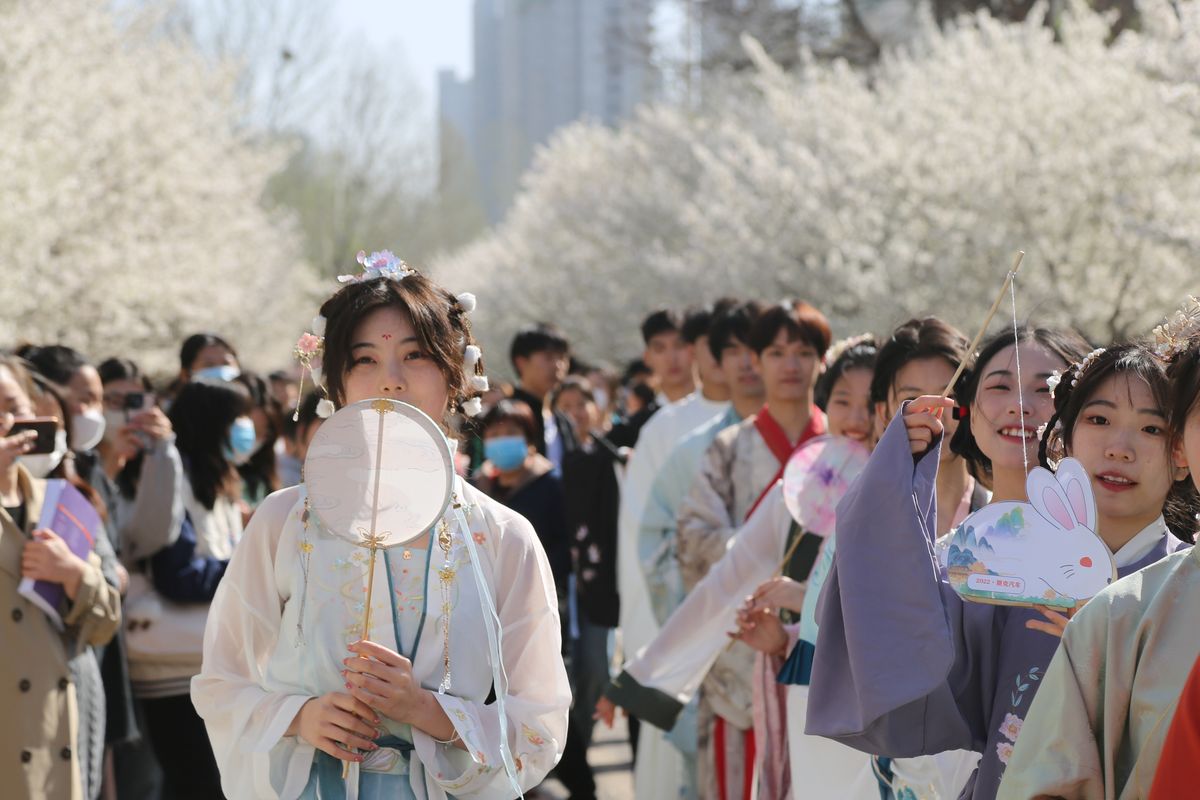 漫漫樱花路,翩然雪絮中。bet36体育在线闻理路上的690棵樱花树当下正值盛花期,学校第五届樱花文化节正式启幕。丰富多彩的文化活动让校园里顿时热闹起来,“春知樱觉”“樱花漫舞”等歌舞表演唱出了新时代青年学生的新期待,“华夏霓裳”汉服展示、“樱邀赴约”国潮集市、“樱香雅韵”茶艺表演等活动让优秀的传统文化穿越时空焕发了新的活力,“共度光樱”春日樱花宴、“樱有尽有”工艺品展示、“樱花之约”石英砂画制作等以樱花为主题的文创产品,吸引师生驻足围观。