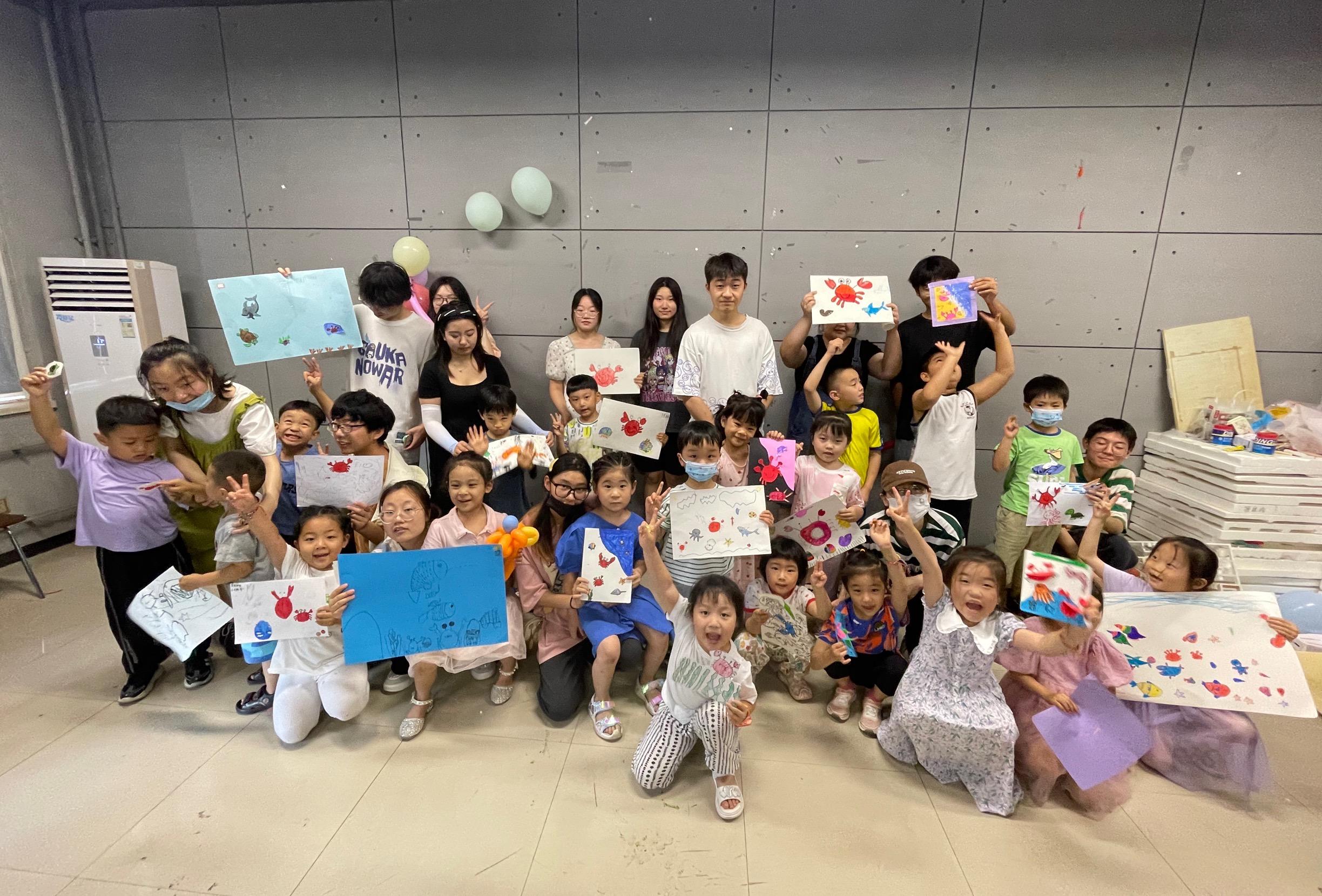 “爸爸妈妈,我们要就结课了,明天一定要来看我的作品展呀”,参加“春田花花”少儿美术创“艺”时光工坊的小朋友说道。暑期以来,来自美术与设计学院的60余名志愿者积极帮助孩子们在绘画中找到乐趣,推出“神奇海洋世界”、“我的手指画”、“爱国爱党”等创意手工课程,让孩子们在绘画中掌握技能,提升创造力。