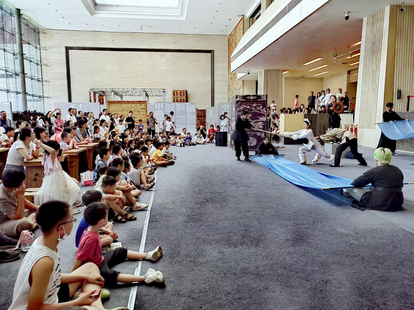 “王小二加油!王小二加油!”到了抢夺宝船的时候,现场的小朋友眉头紧锁、聚精会神,不错过演员们的一举一动,宝船夺回后,他们手舞足蹈,为剧中的角色欢呼呐喊……