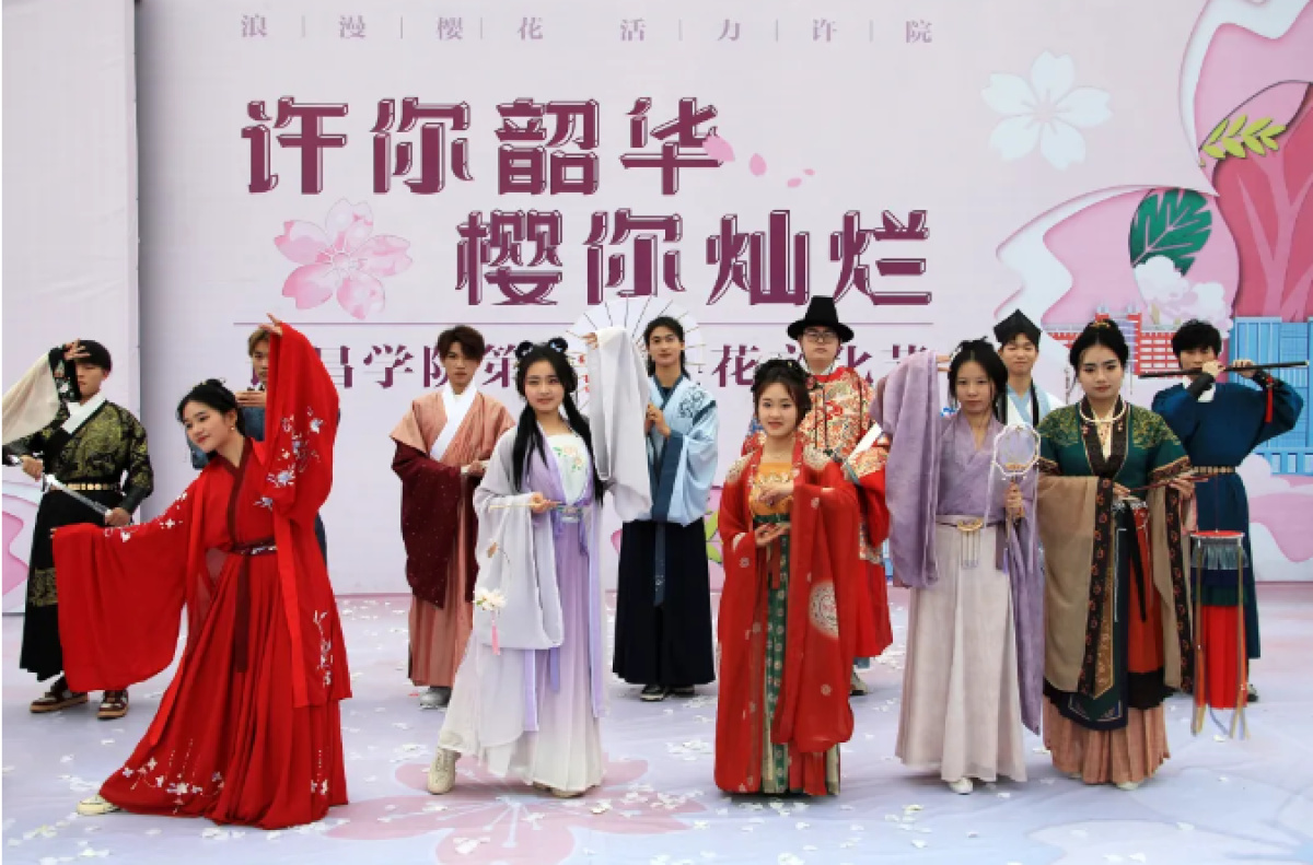 3月20日,bet36体育在线内,在一对舞狮表演中,“许你韶华,樱你灿烂”bet36体育在线第六届樱花文化节正式拉开帷幕,同学们通过舞蹈表演、汉服走秀、古风歌舞、茶艺表演、彩绘樱花妆容等形式,表达自己对于樱花节开幕的喜悦,其中樱花节共包含“樱花树下”——沉浸式思政课堂美育课程展示等四大类18项丰富多彩的文化活动。