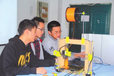 重视创新能力培养,以科技创新活动为载体,积极开展有专业特色的学生科技创新活动,加强创新创业教育。把企业引入校园,在院内建立“IT创新创业孵化器”等实践锻炼平台,首批组建8个学生创新团队进入孵化器,让学生“真刀真枪”在真实课题中得到锻炼。根据专业特色,成立了专业社团和学习阵地,举办动态网站设计大赛、动漫设计大赛、编程强化训练营等专业特色的学习竞赛活动,为学生科研创新搭建平台。通过这些措施,极大地激发学生学习和创新的积极性,信息工程学院学生在全国全省的电子设计竞赛、挑战杯课外科技作品大赛、大学生程序设计大赛、大学生数学建模比赛等活动中都取得了不错的成绩。在“IT创新创业孵化器”中,物联网技术开发团队成员大二学生宋航航、曾仁杰、常元检三位同学结合所学专业知识,积极关注业界前沿技术动态,成功开发3D打印机。