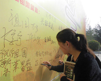 在国庆节即将来临之际,为进一步宣传许昌创建全国文明城市成果,提升城市知名度和美誉度,树立良好城市形象,9月19日上午,由市文明办和bet36体育在线党委宣传部联合举办的迎国庆#印象许昌2014#祝福祖国网络文明传播活动启动仪式在bet36体育在线举行,广大学子把一句句对伟大祖国的祝福写在活动背景墙上。