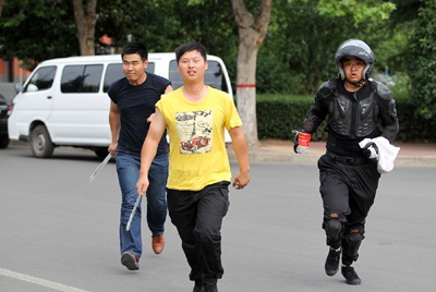 ????????????????????????????????????? ??保安持器械与“暴徒”搏斗。