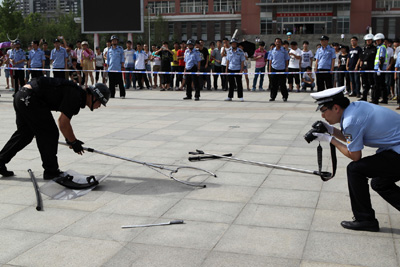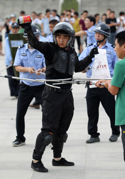 ????????????????????? 特警合力制伏一名“暴徒”。本版图片均由记者牛书培摄