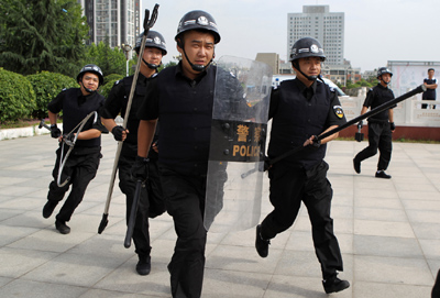 ????????????????????????????????????????全副武装的特警赶赴事发现场。