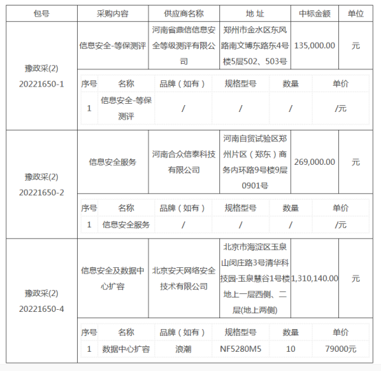 本次中标公告在《河南省政府采购网》《河南省公共资源交易中心》上发布,中标公告期限为1个工作日 。
