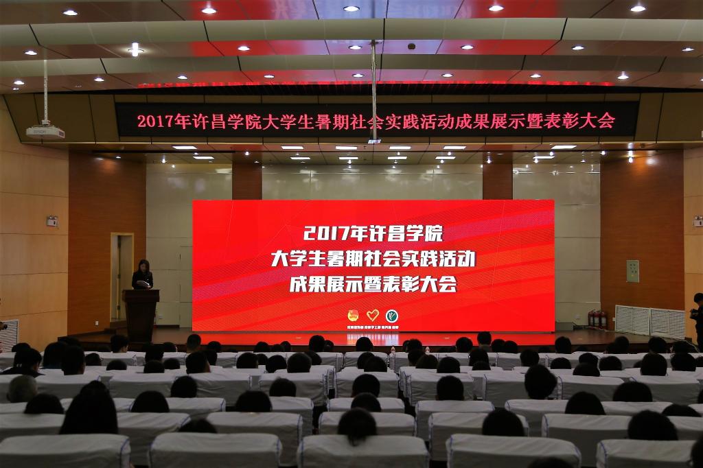 10月26日下午,bet36体育在线2017年大学生暑期社会实践活动成果展示暨表彰大会在学术报告厅举行。校党委副书记孙海、纪委书记罗凤英、副院长黄怡俐出席会议,党委宣传部、学生工作部、教务处等部门负责人,各二级学院党总支、团总支相关负责人以及优秀指导教师、优秀实践队员代表300余人参加会议。会议由校团委书记谢依楠主持。