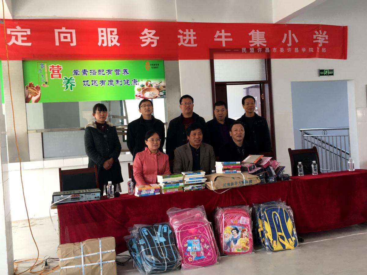为发挥民盟自身优势,积极服务地方,助力脱贫攻坚,在前期调研的基础上,11月23日下午,民盟bet36体育在线支部赴鄢陵县马栏镇牛集小学开展定向服务活动。