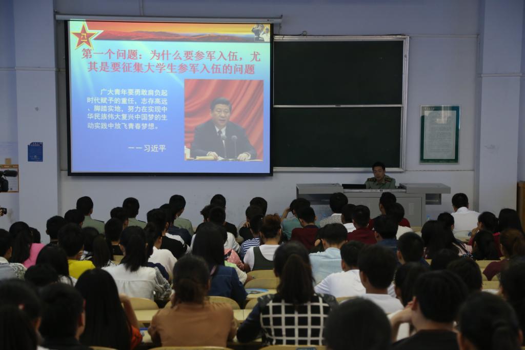 会上,黄克中部长重点围绕大学生为什么要参军入伍的问题进行了深入分析,他运用生动的案例、丰富的数据,分别从我国历史兴衰的经验教训和当今复杂的国防形势这两个角度展开阐述。他说,参军入伍是青年报效国家,保卫人民的神圣使命,同时也是加强国防和军队建设的有力支持。黄克中还详细介绍了大学生参军入伍的标准、条件和优惠政策。