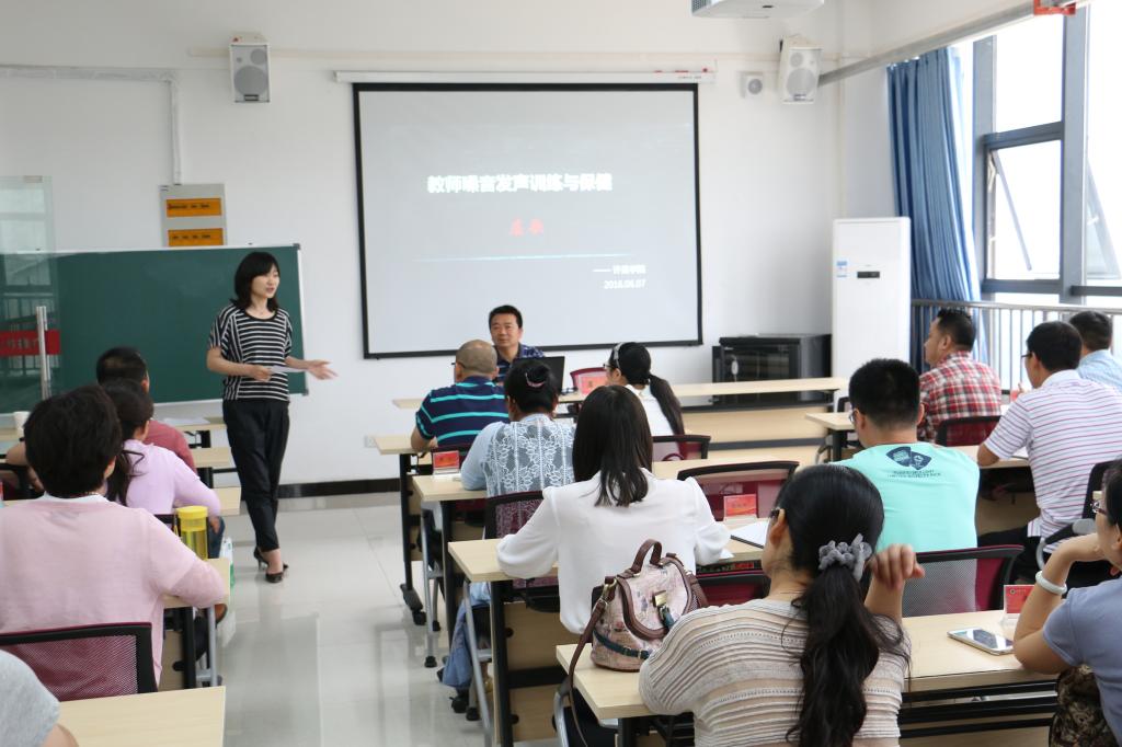 本次讲座使教师们认识到科学用好嗓子、保护嗓子和练好发声的重要性。教师用声的频繁性和高强度,使教师容易出现咽炎、喉炎等慢性疾病,也会给教师的教学效果和生活质量造成一定影响。科学的发声技巧除了能使教师所授内容更加清晰准确之外,还可以给学生带来美的享受。(摄影:陈浩勇)