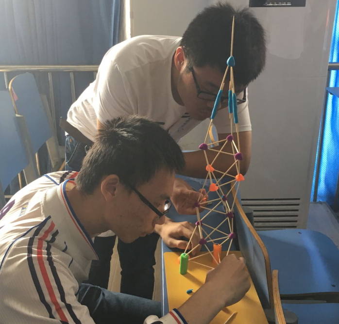本届大赛分为趣味组和专业组,分别面向不同专业基础的参赛学生。趣味组比赛题目为“节节高”,要求参赛同学利用的牙签和橡皮泥,在限定的时间内,搭建近可能高的模型。专业组比赛以“承受局部静荷载的简支结构模型的设计、制作与加载”为题目,要求学生利用白卡纸、白乳胶和线制作大跨度简支结构,然后在结构上施加一定重量的竖向静荷载,模型最终是由模型自身质量与所承受荷载的比值来评定最终成绩,并兼顾其是否符合结构设计经济与安全目标。