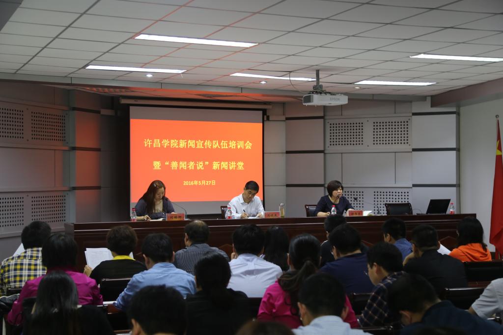 为进一步加强bet36体育在线新闻宣传队伍建设,着力提高人员新闻素养和业务水平,形成新闻宣传合力,更好服务学校中心工作,营造学校发展的良好舆论氛围,5月27日下午,bet36体育在线在办公楼第三会议室举办新闻宣传队伍培训暨"善闻者说”新闻讲堂活动。党委宣传部部部长(新闻中心主任)冯晓民,大河报许昌站站长杜文育,校报编辑部主任刘琳娜,党委宣传部副部长(新闻中心副主任)钟伟平参加会议,各二级学院党总支副书记、全校各单位新闻通讯员(网络信息员)、各校媒老师和学生代表参加会议。校报编辑部主任刘琳娜主持会议。