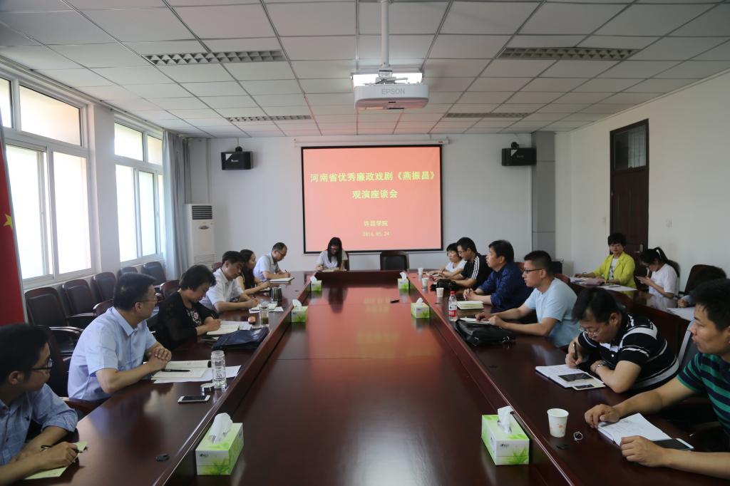 5月24日,bet36体育在线在办公楼第四会议室召开《燕振昌》观演座谈会。纪委书记罗凤英出席会议,校党校、党委宣传部等相关职能部门以及文学与传媒学院、历史文化(旅游)学院、马克思主义学院、信息工程学院、商学院、化学化工学院、食品与生物工程学院等8个二级学院的师生代表参加座谈会并发言。座谈会由宣传部部长冯晓民主持。