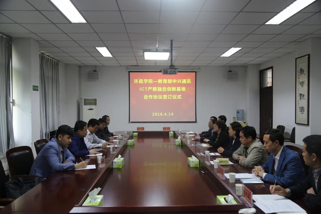4月14日上午,教育部—中兴通讯ICT产教融合创新基地合作协议签订仪式在bet36体育在线办公楼第一会议室举行。院长赵继红、副院长黄怡俐、中兴通讯股份有限公司教育合作中心常务副总许圳彬等出席仪式,bet36体育在线教务处、招生就业处、信息工程学院和中兴通讯股份有限公司教育合作中心等相关负责人参加了此次仪式。仪式由办公室主任陈遂德主持。