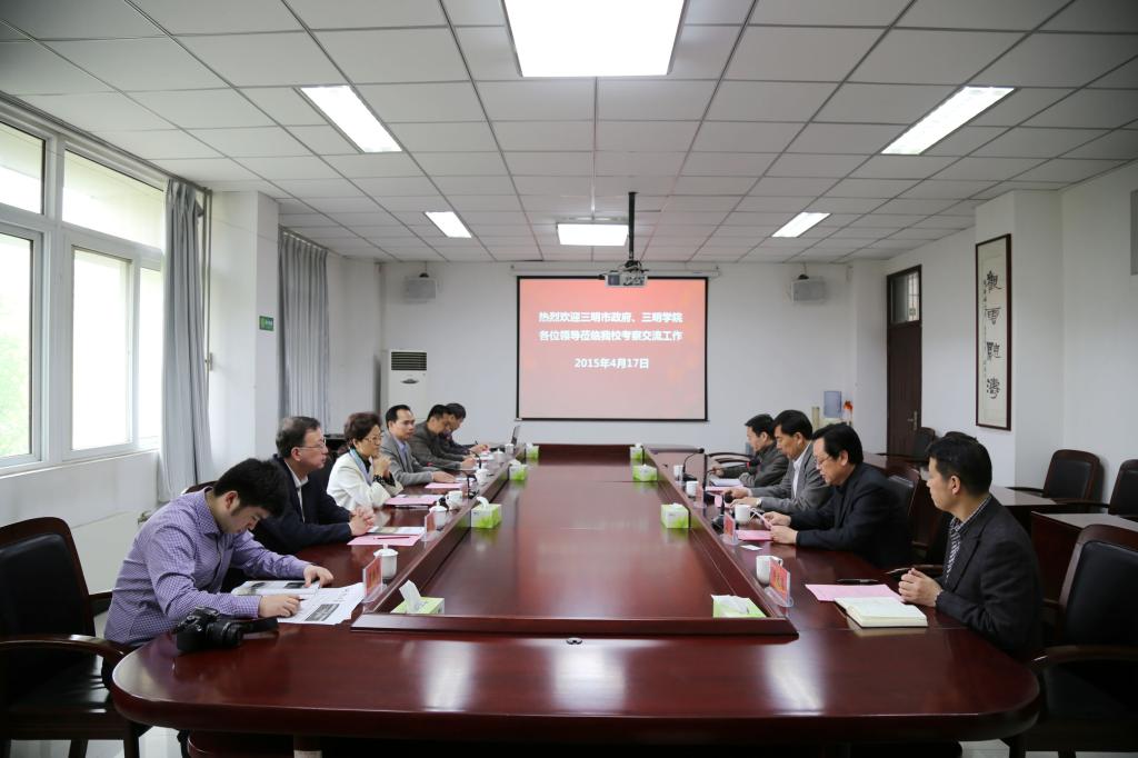 4月17日,福建省三明市政府副市长张丽娟、三明学院党委书记曾祥辉、院长刘健等6人来bet36体育在线考察交流高校转型发展与校地合作工作,党委副书记马超,院长助理兼发规处处长高新战、院办主任陈遂德等接待了考察团。