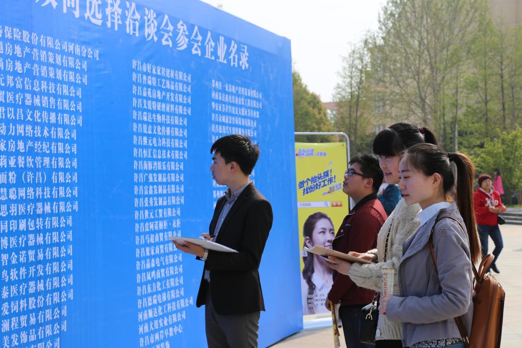 4月11日上午,由bet36体育在线与许昌市人力资源和社会保障局联合举办的“许昌市2015届高校毕业生春季双向选择洽谈会”在bet36体育在线弘毅广场正式举行。