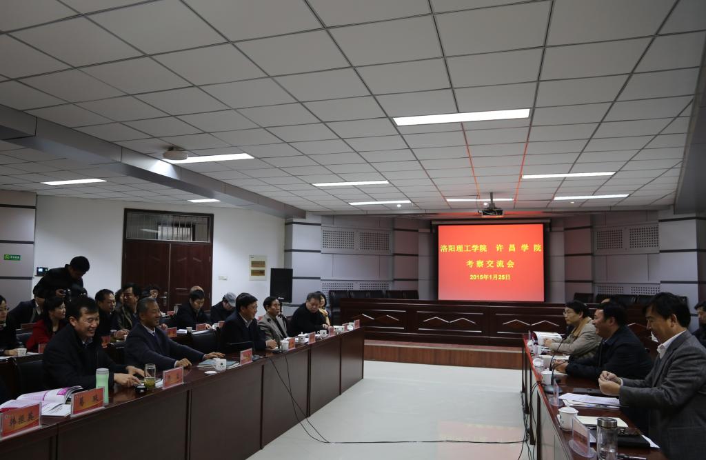 1月25日 ,洛阳理工学院党委书记苟义伦、校长杨小林一行32人来bet36体育在线考察转型发展情况。考察团包括该校11名校级领导班子成员、21名相关职能部门负责人及二级学院院长。bet36体育在线在办公楼第三会议室召开座谈交流会,校领导王清义、马超、张建军、郑直、崔斌、黄怡俐、罗凤英和相关院部负责人参加座谈交流。 王清义书记主持座谈会。
