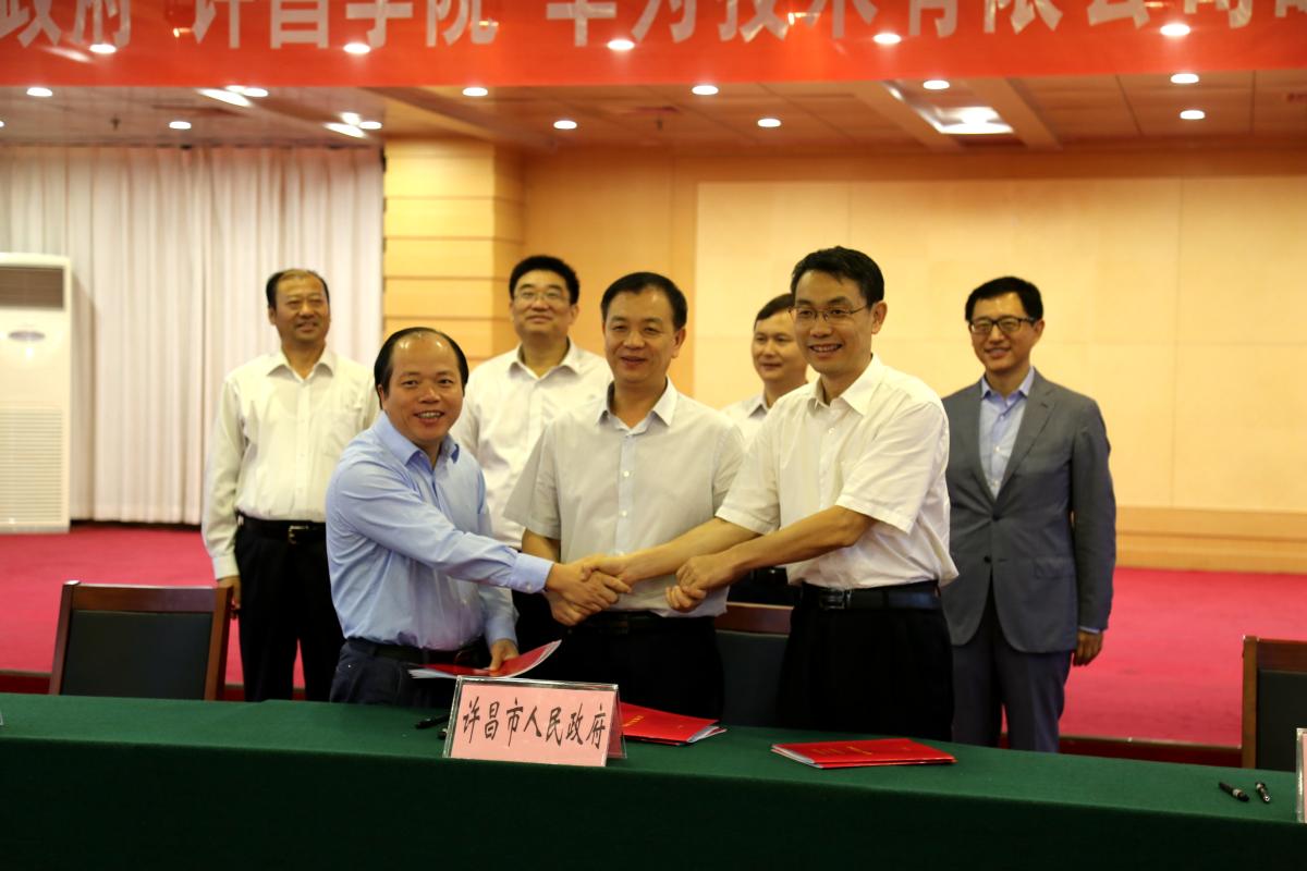 9月22日,bet36体育在线与许昌市人民政府、华为技术有限公司在市政府3号楼举行战略合作协议签约仪式,三方将在信息化建设领域开展合作。党委书记闫建,副院长郑直、崔斌市委常委、常务副市长石迎军,华为公司中国区副总裁李伟出席签约仪式。